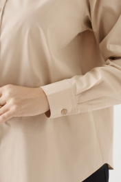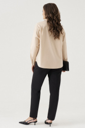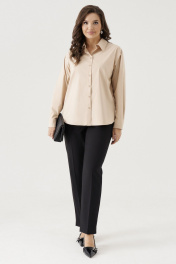 Блуза женская из смесовой ткани с большим содержанием хлопка. Блуза полуприлегающего силуэта. Застежка центральная бортовая на обметанные петли и пуговицы. Горловина обротана отложным воротником с отрезной стойкой. Рукав длинный, втачной, низ рукава оформлен притачной манжетой с застёжкой на обметанную петлю и пуговицу. Длина изделия классическая. Отличный вариант для базового гардероба. В данной блузке вы будете чувствовать себя комфортно и очень стильно. 52 Блузка: Длина изделия - 69см, Длина рукава - 59см, Ширина плеча - 15см, Ширина по груди - 58см, Ширина по низу - 64см, Ширина по талии - 60см, Ширина рукава - 22.9см;
