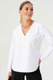 Блуза женская из хлопковой ткани для повседневной носки. Блуза свободная с длинным рукавом. Горловина V- образная. Рукава оформлены манжетой. Низ закругленный. По спинке изделия встречная складка. 42 Блузка: Длина изделия - 67см, Длина рукава - 57см, Ширина плеча - 14.3см, Ширина по груди - 55см, Ширина по низу - 54см, Ширина рукава - 24.4см; 44 Блузка: Длина изделия - 67см, Длина рукава - 57см, Ширина плеча - 14.5см, Ширина по груди - 57см, Ширина по низу - 56см, Ширина рукава - 25см; 46 Блузка: Длина изделия - 67см, Длина рукава - 57см, Ширина плеча - 14.7см, Ширина по груди - 59см, Ширина по низу - 58см, Ширина рукава - 25.6см; 48 Блузка: Длина изделия - 67см, Длина рукава - 57см, Ширина плеча - 18.8см, Ширина по груди - 61см, Ширина по низу - 60см, Ширина рукава - 26.3см; 50 Блузка: Длина изделия - 67см, Длина рукава - 57см, Ширина плеча - 15.1см, Ширина по груди - 63см, Ширина по низу - 62см, Ширина рукава - 26.9см;