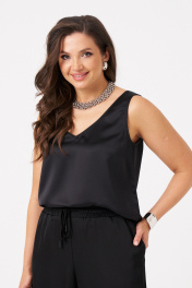 Блузка женская прямого силуэта из струящейся ткани. Подходит как для повседневной носки, так и для торжественных мероприятий. Блузка с V- образной горловиной. Блузка не имеет рукавов. Очень красивая и элегантная блузка, в которой вы всегда будете в центре внимания. 42 Блузка: Длина спинки - 58см, Длина спинки от выреза - 44,5см, Ширина плеча - 4,8см, Ширина по груди - 45см, Ширина по низу - 52,5см;