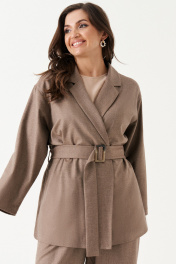 Стильный жакет из поливискозы с поясом и карманами Панда 185630w коричневый