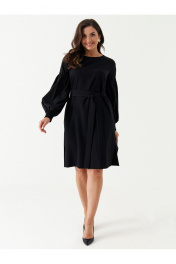 Платье из смесовой ткани с нагрудными вытачками и поясом Панда 188680w черный