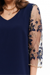 Женское нарядное платье из струящейся ткани — это идеальный выбор для тех, кто ищет универсальный и стильный элемент гардероба. Классический крой в сочетании с V-образной горловиной и свободным силуэтом делает его подходящим как для повседневной, так и для офисной носки. Благодаря своей легкости и изящной посадке, платье создаёт ощущение комфорта на протяжении всего дня. Спинка украшена декоративной кокеткой из сетки с узором и изящной застёжкой на пуговицы, придающей образу утончённости. Два декоративных подреза на спинке тянутся от кокетки до линии низа, добавляя оригинальности. Втачные длинные рукава выполнены из вставки из той же сетки, гармонично дополняя общий дизайн. Это базовое женское платье станет отличным решением для весеннего и летнего сезона, когда особенно хочется выглядеть нарядно, не жертвуя удобством. Синий оттенок подчеркивает деловой стиль, что делает его уместным для офиса и деловых встреч, а также для праздничных мероприятий. Такое женское платье можно смело выбрать для торжеств, свиданий, прогулок или как элемент праздничного гардероба. Его свободный крой не сковывает движения, а потому вы будете чувствовать себя уверенно в любой ситуации. Платье подходит для женщин, ценящих комфорт, стиль и универсальность. Оно может стать как основой базового гардероба, так и ярким акцентом в нарядном образе. 50 Платье: Дл.спины от высшей плечевой точки до талии - 43см, Длина изделия - 99,5см, Длина рукава - 46см, Ширина плеча - 8,5см, Ширина по бедрам - 70,5см, Ширина по груди - 55см, Ширина рукава - 19,8см; 54 Платье: Дл.спины от высшей плечевой точки до талии - 43,5см, Длина изделия - 102,5см, Длина рукава - 46см, Ширина плеча - 9см, Ширина по бедрам - 74,5см, Ширина по груди - 59см, Ширина рукава - 21,2см; 56 Платье: Дл.спины от высшей плечевой точки до талии - 43,5см, Длина изделия - 103см, Длина рукава - 46см, Ширина плеча - 9см, Ширина по бедрам - 76,5см, Ширина по груди - 61см, Ширина рукава - 22см;