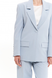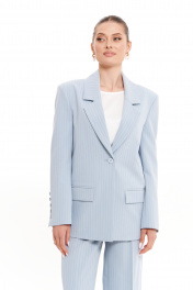 Женский жакет из смесовой ткани в полоску – универсальный базовый элемент гардероба, который подчеркнет ваш стиль в любом образе. Этот классический жакет прямого силуэта идеально подходит для повседневной носки, офисных встреч или праздничных выходов. Свободный крой обеспечивает комфорт, а деловой дизайн с пиджачным воротником и центральной застежкой на пуговицу добавляет элегантности. Жакет выполнен в нежном голубом оттенке, что делает его идеальным для летнего и весеннего сезонов. Модель дополнена прорезным карманом с клапаном, двухшовными рукавами с нарядной шлицей и пуговицами. Подкладка обеспечивает удобство при носке, а классический крой подходит для любого типа фигуры. Этот женский жакет станет отличным выбором для создания офисного лука в сочетании с брюками или юбкой, а также для повседневных образов с джинсами или платьем. Универсальность модели позволяет носить ее как в деловой обстановке, так и на праздничных мероприятиях. Благодаря свободному крою и базовому дизайну, жакет легко комбинируется с другими вещами, делая его must-have в вашем гардеробе. 46 Жакет: Длина изделия - 71.5см, Длина рукава - 61см, Ширина плеча - 15.5см, Ширина по бедрам - 55см, Ширина по груди - 53.5см, Ширина рукава - 19.3см;