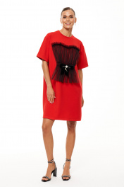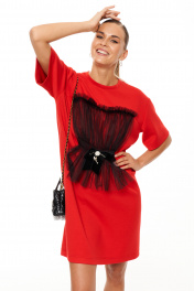 Платье-коктейль из трикотажа с сборкой и съемной брошкой Панда 208680w красный