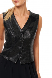 Жилет с пайетками и трикотажем нарядный на любой случай Панда 209637w черный