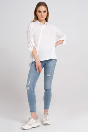 Блузка приталенная из хлопка с ассиметричной планкой Панда 27240z белый
