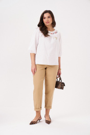 Блузка прямого силуэта с вышивкой и рукавом 3/4 Панда 36540z белый