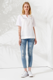 Белая хлопковая блуза с вышивкой и асимметричным силуэтом Панда 91340w белый
