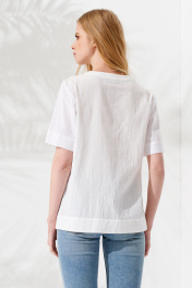 Белая хлопковая блуза с вышивкой и асимметричным силуэтом Панда 91340w белый - фото 3
