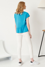 Белая летняя блуза из хлопка с коротким рукавом Панда 93240w голубой