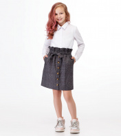 Модная стильная юбка для девочки с объемными складками по поясу и резинкой по талии. Юбка полуприлегающего силуэта, со съёмным декоративным поясом, с имитацией планки по переду, которая дополнена декоративными пуговицами. По переду складочки. В боковых швах карманы. Юбка из поливискозной ткани без подкладки. 30 Юбка: Длина изделия - 36см, Ширина по бедрам - 41см, Ширина по талии - 25.5см;