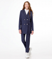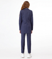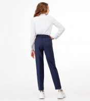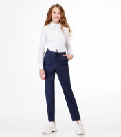 Стильные молодежные брюки для девочки из вискозной ткани с рисунком в узкую полоску. Брюки с застежкой на молнию и крючок по переду. Пояс на резинке с декоративным шнурком. По переду имеются небольшие складочки, идущие от пояса. Брюки чуть заужены к низу, по низу манжеты. По переду брюк карманы. Отличный вариант как для школы, так и для повседневных дней. 36 Брюки: Высота посадки - 24см, Длина брюк с поясом - 100см, Длина по внутреннему шву - 69см, Ширина брючин сверху - 54см, Обхват брюк по низу - 31см, Ширина по бедрам - 41см, Ширина по талии - 28.5см;