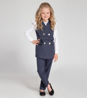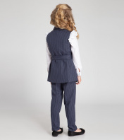 Стильная молодежная удлиненная жилетка для девочки из вискозной ткани в полоску. Жилет на притачной по низу вискозной подкладке. Жилет с V-образным вырезом горловины и воротником пиджачного типа. Жилет двубортный с застежкой на 2 петли с глазком и пуговицы и потайную петлю и пуговицу. Пуговицы на переде так же выполняют декоративную функцию. По бокам на переде расположены горизонтальные прорезные карманы в "рамку" с клапаном. Спинка со средним швом. По боковым швам на уровне талии находятся шлевки. В комплект входит съемный пояс с обтяжной пряжкой и блочками, позволяющими регулировать пояс. Жилет станет отличным решением для школьных дней. Он отлично комбинируется как с юбкой, так и с брюками. Стильный элемент гардероба, который мгновенно создает строгий и сдержанный образ. 30 Жилет: Длина изделия - 51см, Ширина плеча - 6.5см, Ширина по бедрам - 40см, Ширина по груди - 36см; 30 Жилет: Длина изделия - 54см, Ширина плеча - 7см, Ширина по бедрам - 40см, Ширина по груди - 36см; 32 Жилет: Длина изделия - 57см, Ширина плеча - 7.5см, Ширина по бедрам - 42см, Ширина по груди - 38см; 34 Жилет: Длина изделия - 60см, Ширина плеча - 8см, Ширина по бедрам - 44см, Ширина по груди - 40см;