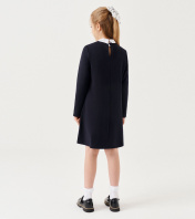 Модное платье для девочки из хлопкового трикотажного полотна со съёмным белым воротничком из смесовой сорочечной ткани. Платье расширенного силуэта, с длинными рукавами, с круглым вырезом горловины, с застежкой на петлю и пуговицу по спинки. По переду платье украшено бусинками. Отличный вариант как в школу, так и для повседневных дней. 30 Платье: Длина изделия - 63см, Длина рукава - 42.5см, Обхват шеи - 34см, Ширина плеча - 8см, Ширина по груди - 34см, Ширина по талии - 37см, Ширина рукава - 12см; 30 Платье: Длина изделия - 66см, Длина рукава - 45см, Обхват шеи - 34см, Ширина плеча - 8.5см, Ширина по груди - 34см, Ширина по талии - 37см, Ширина рукава - 12см; 34 Платье: Длина изделия - 72см, Длина рукава - 50см, Обхват шеи - 35см, Ширина плеча - 9.5см, Ширина по груди - 40см, Ширина по талии - 40см, Ширина рукава - 13см; 34 Платье: Длина изделия - 75см, Длина рукава - 52.5см, Обхват шеи - 35см, Ширина плеча - 10см, Ширина по груди - 40см, Ширина по талии - 40см, Ширина рукава - 13см;