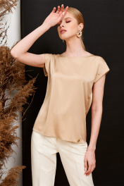 Бежевая офисная блузка из полиэстера и эластана Панда ПА-459340 бежевый