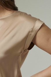 "Элегантная базовая блузка - неотъемлемая вещь офисного гардероба, которая пригодна для повседневной носки. Однотонная расцветка позволяет сочетать блузку с классическими черными или яркими брюками, джинсами и юбками. Блузка женская с коротким рукавом выглядит изящно благодаря мягкой ткани с характерным блеском. Она изготовлена из полиэстера и эластана - износоустойчивой и приятной на ощупь ткани, которая легко тянется и хорошо пропускает воздух. Блузка с коротким рукавом, вырезом горловины «лодочка» и аккуратно обработанным низом выполнена в прямом фасоне. Блузка женская в офис имеет неформальный вид, в отличие от традиционной одежды в деловом стиле. Проймы рукавов украшены отложными манжетами. Лаконичный дизайн позволяет носить различные аксессуары, жакеты и пиджаки, тем самым меняя повседневные образы. Блузка классическая женская представлена в базовых и ярких расцветках. Элегантная блузка - универсальная вещь, которую можно купить в качестве дополнения базового гардероба." 42 Блузка: Длина изделия - 57.5см, Ширина плеча - 16см, Ширина по низу - 50см, Ширина под проймой - 47см, Ширина рукава - 18.8см; 44 Блузка: Длина изделия - 57.5см, Ширина плеча - 16см, Ширина по низу - 52см, Ширина под проймой - 49см, Ширина рукава - 19.5см; 46 Блузка: Длина изделия - 57.5см, Ширина плеча - 16.5см, Ширина по низу - 54см, Ширина под проймой - 51см, Ширина рукава - 20.2см; 48 Блузка: Длина изделия - 58.5см, Ширина плеча - 16.5см, Ширина по низу - 56см, Ширина под проймой - 53см, Ширина рукава - 21см; 50 Блузка: Длина изделия - 59см, Ширина плеча - 17см, Ширина по низу - 58см, Ширина под проймой - 55см, Ширина рукава - 21.7см; 52 Блузка: Длина изделия - 59см, Ширина плеча - 17.5см, Ширина по низу - 60см, Ширина под проймой - 57см, Ширина рукава - 22.3см;