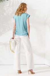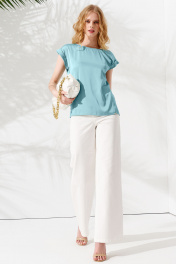 Блуза летняя голубая с коротким рукавом и блестящей тканью Панда ПА-459340 бирюзовый