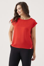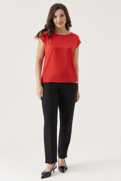 "Элегантная базовая блузка - неотъемлемая вещь офисного гардероба, которая пригодна для повседневной носки. Однотонная расцветка позволяет сочетать блузку с классическими черными или яркими брюками, джинсами и юбками. Блузка женская с коротким рукавом выглядит изящно благодаря мягкой ткани с характерным блеском. Она изготовлена из полиэстера и эластана - износоустойчивой и приятной на ощупь ткани, которая легко тянется и хорошо пропускает воздух. Блузка с коротким рукавом, вырезом горловины «лодочка» и аккуратно обработанным низом выполнена в прямом фасоне. Блузка женская в офис имеет неформальный вид, в отличие от традиционной одежды в деловом стиле. Проймы рукавов украшены отложными манжетами. Лаконичный дизайн позволяет носить различные аксессуары, жакеты и пиджаки, тем самым меняя повседневные образы. Блузка классическая женская представлена в базовых и ярких расцветках. Элегантная блузка - универсальная вещь, которую можно купить в качестве дополнения базового гардероба." 42 Блузка: Длина изделия - 57.5см, Ширина плеча - 16см, Ширина по низу - 50см, Ширина под проймой - 47см, Ширина рукава - 18.8см; 44 Блузка: Длина изделия - 57.5см, Ширина плеча - 16см, Ширина по низу - 52см, Ширина под проймой - 49см, Ширина рукава - 19.5см; 46 Блузка: Длина изделия - 57.5см, Ширина плеча - 16.5см, Ширина по низу - 54см, Ширина под проймой - 51см, Ширина рукава - 20.2см;