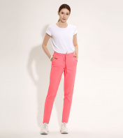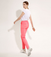 Стильные молодежные брюки модного неонового оттенка из хлопковой ткани с поясом на резинке с декоративным шнурком. Брюки чуть заужены к низу. По переду брюк карманы. На задней части брюк фигурная кокетка и декоративные карманы в рамку. Отличный вариант для активного летнего отдыха. 40 Брюки: Высота посадки - 23.5см, Длина брюк с поясом - 96см, Длина по внутреннему шву - 72.5см, Ширина брючин сверху - 58см, Обхват брюк по низу - 29.5см, Ширина по бедрам - 45.5см, Ширина по талии - 30см;