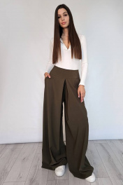 Брюки женские классические со средней посадкой - база любого гардероба. Широкие, расклешённые брюки палаццо - настоящий тренд этого сезона. Универсальная модель подойдет абсолютно всем: для карьеристок в офис, девушкам и учителям в школу, на каждый день или на свидание. Брюки отлично смотрятся со строгими блузками или укороченными топами, под каблуки и кроссовки. Брюк свободного кроя с двумя боковыми карманами визуально улучшают фигуру, стройнят, вытягивая силуэт. Приятная телу ткань создает волнующие складки, развивающимися при движении.