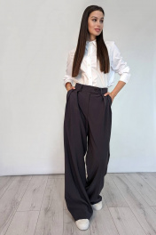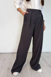Эффектные широкие брюки-палаццо из текстильной ткани выглядят просто роскошно. Стильные, с оригинальным дизайном, и при этом невероятно практичные, они станут идеальным выбором на каждый день, а при удачно подобранном сочетании с воздушными блузами, кашемировыми свитерами или рубашками, позволят блистать и на вечеринке. В таком элегантном образе Вы точно будете неотразимы. Это вечная классика.