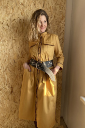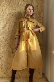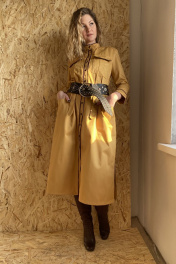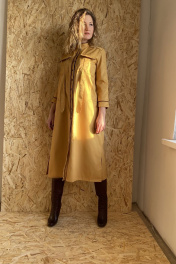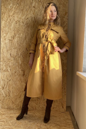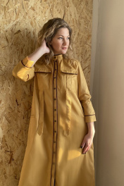 Платье в стиле милитари в горчиц цвете длинною миди.