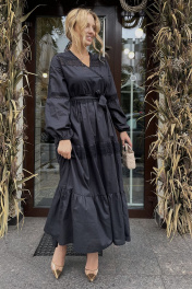 Богемное платье с запахом на груди и с завышенной талией. Многоярусная юбка из трёх воланов. Длина миди. В отделке использовано хлопковое кружево. Идеально сочетается с любой обовью; сапоги, ботинки, кеды, кроссовки, сандали, туфли, босоножки. Отличной подойдёт под любой образ!
