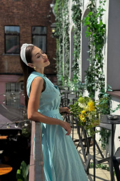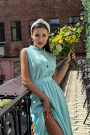 Платье из льна с воланами на каждый день Pavlova 162 бирюза