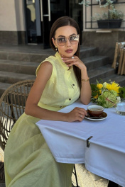 Леновое платье с поясом и свободным кроем Pavlova 162 лимонный