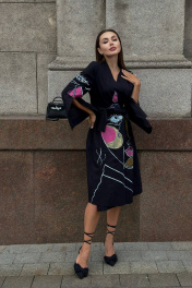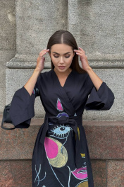 Платье-кимоно с ручной росписью, свободный крой, миди Pavlova 165/1