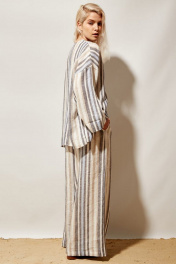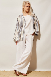 Мультиколор льняная рубашка свободного кроя с разрезами PINA 20811 полоска