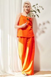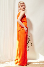 Оранжевый топ из льна на тонких бретелях лето PINA 20842 оранжевый