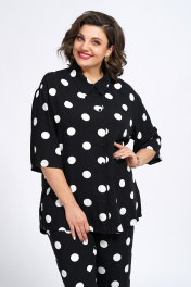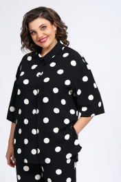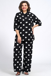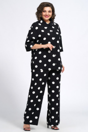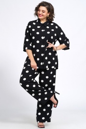 Костюм из блузки и брюк из текстиля для ежедневного стиля Пинск-Стиль 132 черный_белый_горох