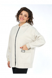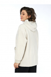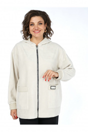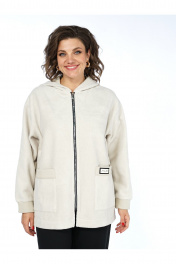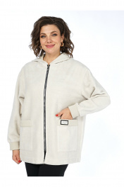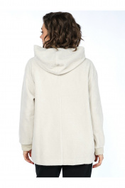 Жакет женский прямого силуэта, удлиненный, чуть ниже линии бедер. Линия плеча естественная. Это придает более четкую форму плечевого пояса, и аккуратный вид всего изделия. Пройма неглубокая, умеренно широкая. По линии гриди, талии и бедер изделие свободно прилегает к фигуре, к низу слегка расширенное. Спинка со средним швом. На переде обработаны накладные карманы, низ рукава обработан манжетой. Жакет застёгивается на тесьму молнию. Капюшон среднего размера. Длина жакета по спинке в размере 50 и 52 -71 см, 54,56 и 58 - 72 см, 60,62 и 64 - 79см, ширина жакета по линии груди в размере 50 - 61см, 52 - 63см, 54 - 65см, 56 - 67 см, 58 -69см, 60 - 71см, 62 - 73см, 64 - 75см, длина рукава жакета с плечевым швом в размере 50-58 - 75см, 60-64 75см,ширина рукава под проймой в размере 50 и 52- 23см, 54-58 - 24см, 60-64 - 26см, ширина по линии бёдер в размере 50 - 61см, 52 - 63см, 54 - 65см, 56 - 67 см, 58 -69см, 60 - 71см, 62 - 73см, 64 - 75см.