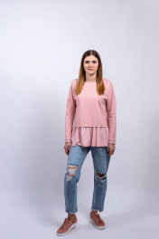 Джемпер на каждый день из трикотажа с воланом Пинск-Стиль 3909 розовый