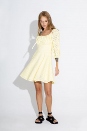 Мини-платье хлопковое из ришелье с вырезом на каждый день PiRS 4569 желтый