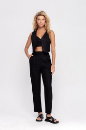Брюки со складками из льна для делового образа PiRS 4710 черный