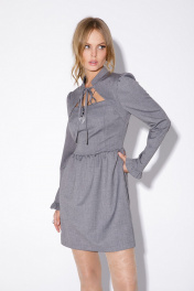Мини-платье с кокетками и воротником-стойкой из текстиля PiRS 5562 серый