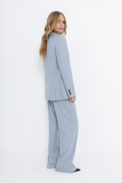Текстильный жакет свободного покроя. Детали: жакет полуприлегающего силуэта, талиевые вытачки, пиджачный воротник, застежка на две петли и пуговицы, функциональные карманы, рукава и спинка со шлицами, жакет на подкладке. Длина по спинке около 70 см в размерах 40-46 и около 73 см в размерах 48-52, длина рукавов около 63 см.