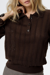 Хлопковое свободное поло ажурной вязки.