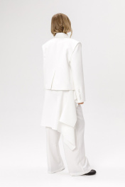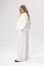 Укороченный оверсайз жакет в полоску с необработанными проймами. Детали: жакет прямого силуэта, пиджачный воротник, двубортная застежка на две петли и пуговицы, функциональные карманы, спинка с фигурной кокеткой, рукава втачные, жакет на подкладке. Длина по спинке около 55 в размерах 40-46 и около 56,5 см в размерах 48-52, длина рукавов около 61 см. Приобрести брюки с фото можно по арт. 6378, пояс-баску по арт.6379