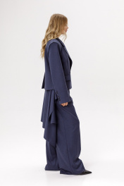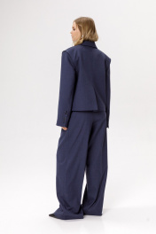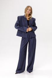 Укороченный оверсайз жакет в полоску с необработанными проймами. Детали: жакет прямого силуэта, пиджачный воротник, двубортная застежка на две петли и пуговицы, функциональные карманы, спинка с фигурной кокеткой, рукава втачные, жакет на подкладке. Длина по спинке около 55 в размерах 40-46 и около 56,5 см в размерах 48-52, длина рукавов около 61 см. Приобрести брюки с фото можно по арт. 6378, пояс-баску по арт.6379