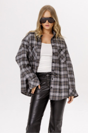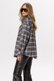 Оверсайз рубашка в клетку (приобрести брюки с фото можно по арт. 6522, приобрести баску с фото можно по арт. 6551). Детали: прямой силуэт, свободный покрой, рубашечный воротник, застежка на петли и пуговицы, перед с накладными карманами, спинка с кокеткой, рукава длинные с манжетами. Длина по спинке около 69 в размерах 40-46 и около 71см в размерах 48-52, длина рукавов со спущенным плечом около 62+9 см