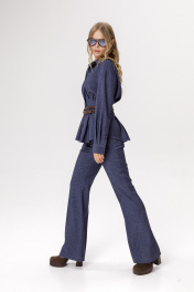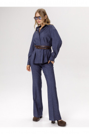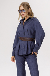 Приталенная рубашка со складками из текстиля под джинс (приобрести брюки с фото можно по арт. 6569). Детали: прилегающий силуэт, удлинённая линия плеча, застроченные складки по талии переда и спинки, рубашечный воротник, застёжка на петли и пуговицы, длинные рукава с притачными манжетами, фигурный низ. Длина по спинке около 66 см в размерах 40-46, около 69 см в размерах 48-52, длина рукава с плечом около 75 см
