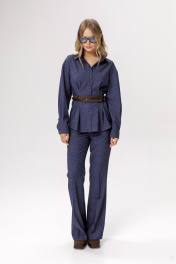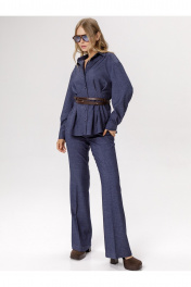 Брюки-клёш со стрелками из текстиля под джинс (приобрести рубашку с фото можно по арт. 6568). Детали: брюки с притачным поясом со шлёвками, талиевые вытачки и заутюженные стрелки по передним и задним половинкам брюк, наклонные карманы в боковом шве, застёжка на молнию и крючок. Длина по боковому шву с поясом около 112 см в размерах 40-46 и около 115,5 см в размерах 48-52. Длина по внутреннему шву около 82 см.