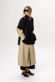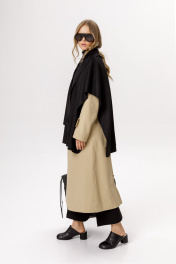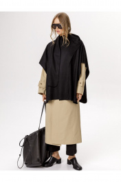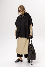 Свободное пончо из шерсти без боковых швов. Детали: прямой силуэт, свободный покрой, V- образный вырез горловины переда, без застежки, без подкладки Длина по спинке около 72 см в размерах 40-52