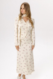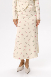 Юбка из принтованного атласа длины миди (приобрести блузу с фото можно по арт. 6681). Детали: высокая посадка, притачной пояс с обтачками, потайная застежка в левом боковом шве, подкладка- 100% вискоза. Длина юбки по боковому шву с поясом около 86 см