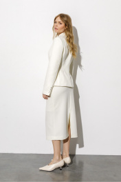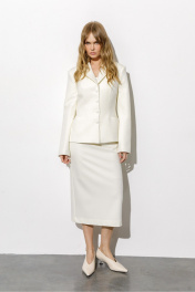 Приталенный жакет из текстильной ткани в рубчик с акцентными карманами (приобрести юбку с фото можно по арт. 6734). Детали: приталенный силуэт, пиджачный воротник, перед с фигурными рельефами и талиевой вытачкой, спинка с рельефами и средним швом со шлицей, застежка на петли и пуговицы, втачные классические рукава со шлицей и пуговицами по низу, функциональные карманы, жакет на подкладке. Длина по спинке около 59,5 см в размерах 40-46, около 62,5 см в размерах 48-52