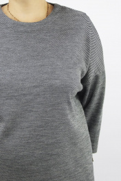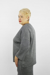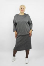 Комплект второго слоя одежды, состоит из джемпера и юбки. Джемпер прямого силуэта со спущеной линей плеча, рукавом 3/4. Круглый вырез горловины обработан обтачкой.Перед со спинкой разноуровненые. Низ изделия и рукавов обработан подгибом 4см.На переде пришито декоративное украшение. Юбка прямого силуэта с двумя разрезами по боковым швам. Верхний срез юбки обработан притачным поясом. Юбка на подкладке.