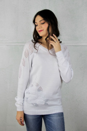Джемпер прямой силуэт с V-образным вырезом и отверстие на спинке Полесье С1004-20 0С2126-Д43 158,164 отбеленный
